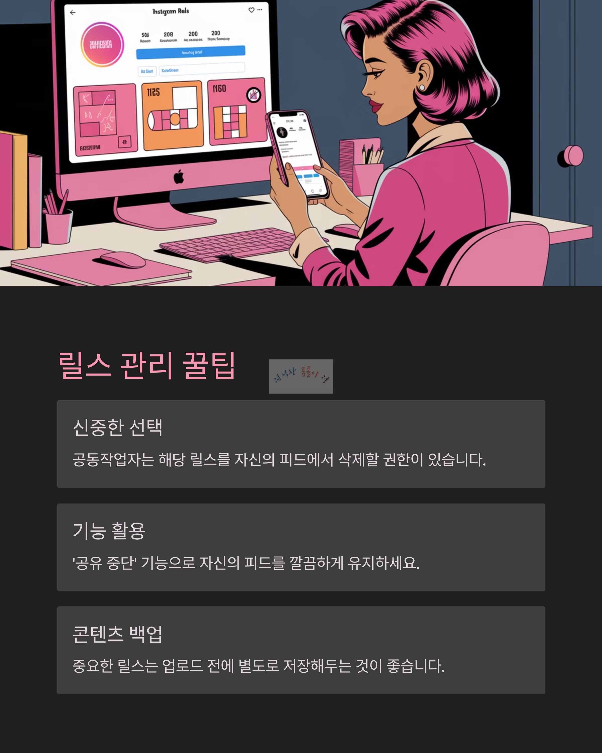 - 릴스 관리 기능 적극 활용하기: 필요에 따라 '공유 중단' 기능을 활용해 자신의 피드를 깔끔하게 유지할 수 있습니다.