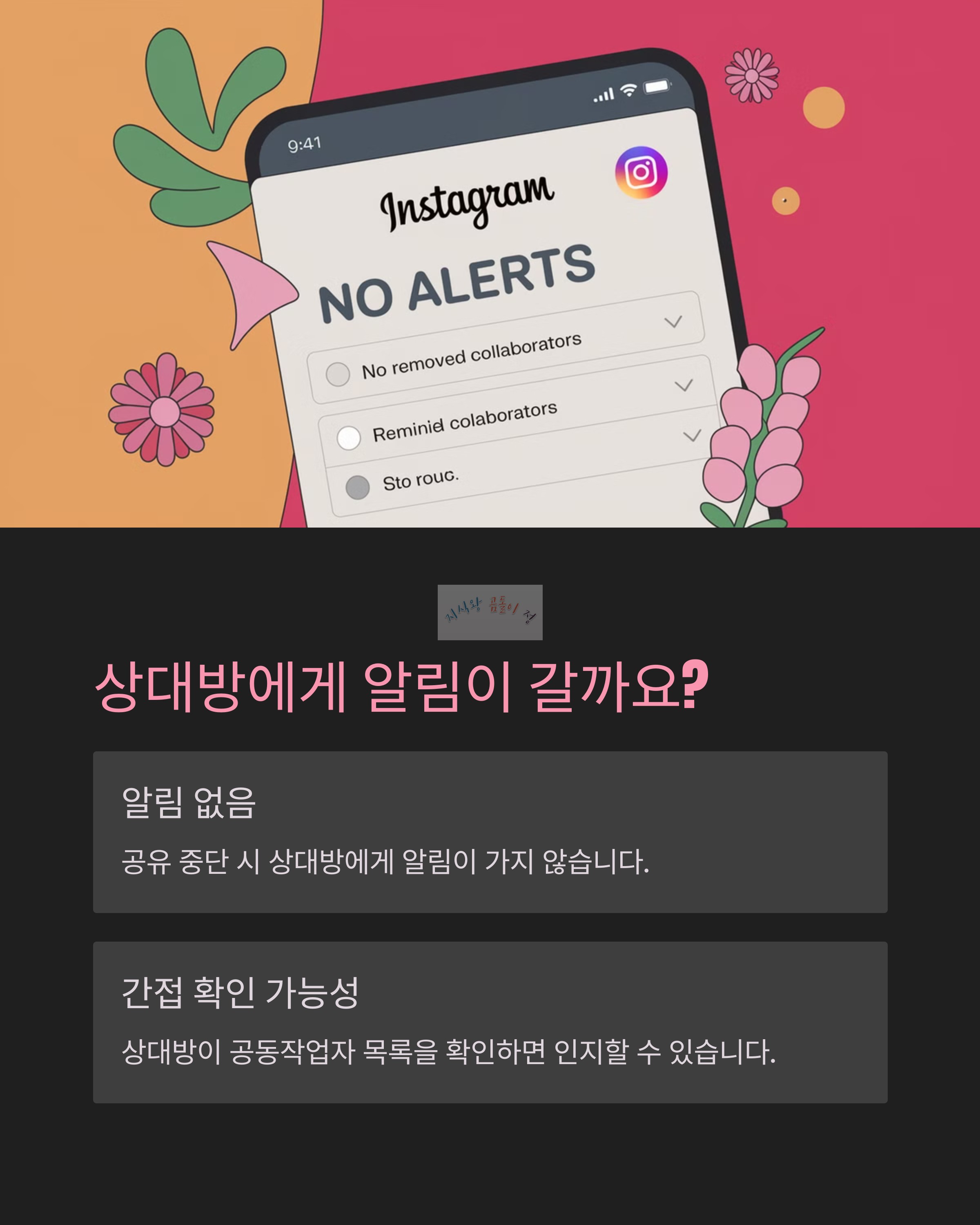 인스타그램에서 '공유 중단'을 선택해도 상대방에게 알림이 가지 않습니다.