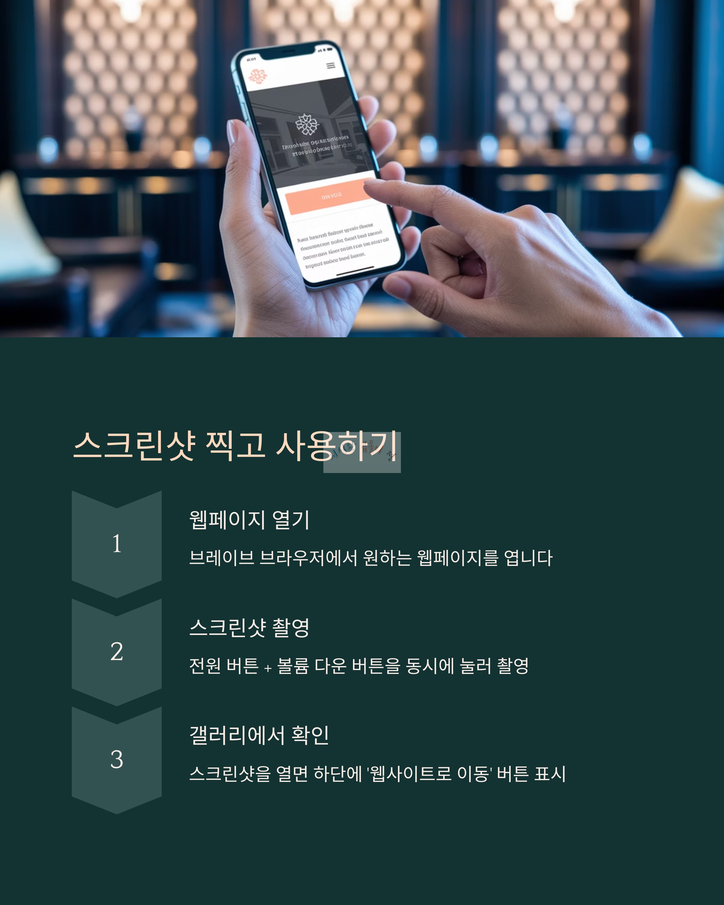 모바일 환경에서 브레이브 브라우저를 사용할 때, 특정 웹사이트의 스크린샷을 찍으면 '웹사이트로 이동' 기능이 표시되는 경우가 있습니다.