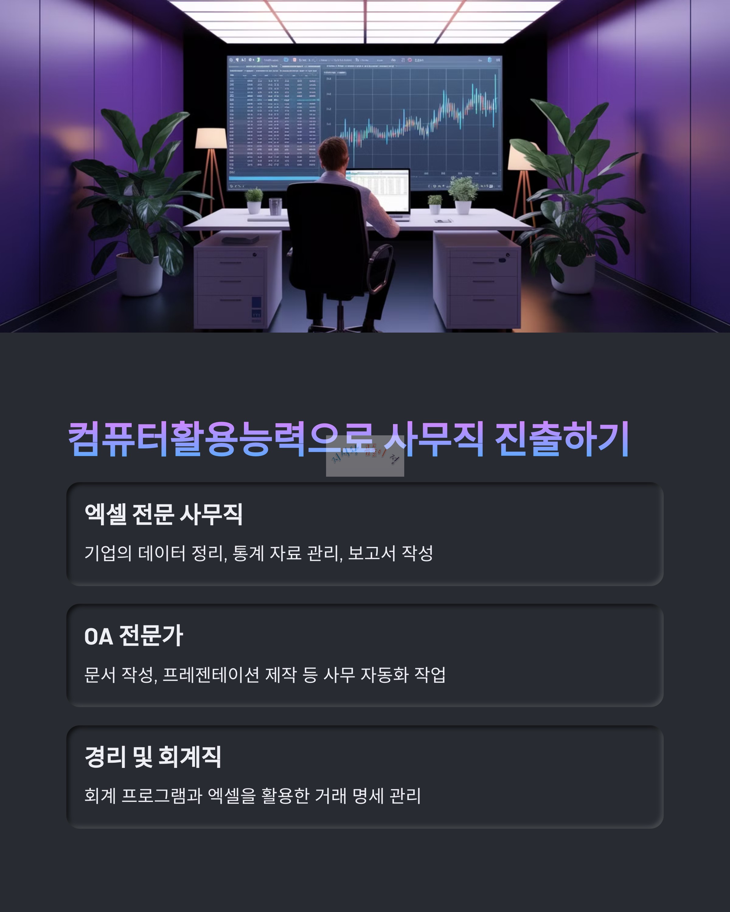 - OA (Office Automation) 전문가: 회사의 문서 작성, 프레젠테이션 제작 등 사무 자동화 작업 수행