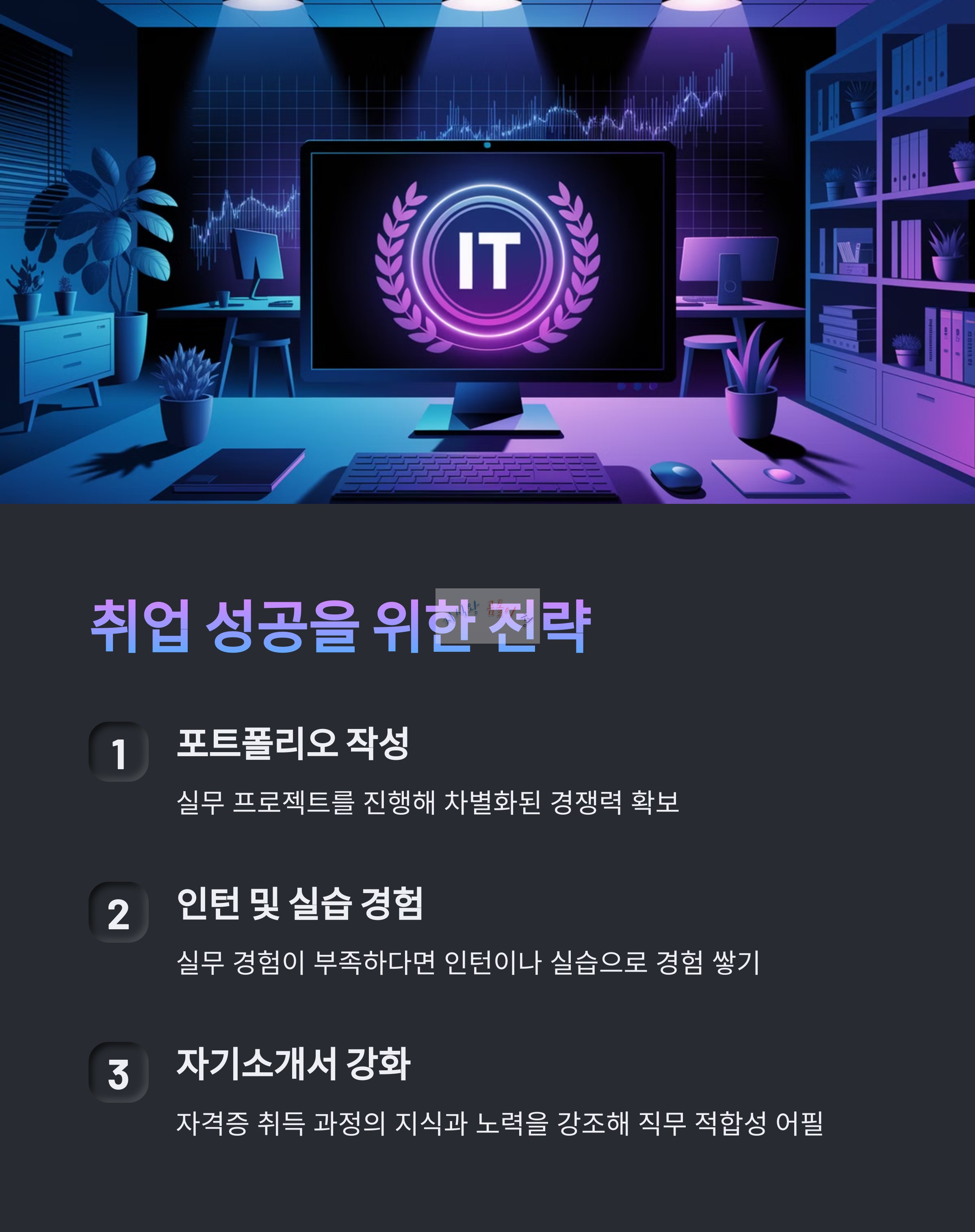 - 정보처리기능사로 IT 기초 직종, 사무보조 업무에 도전 가능합니다.