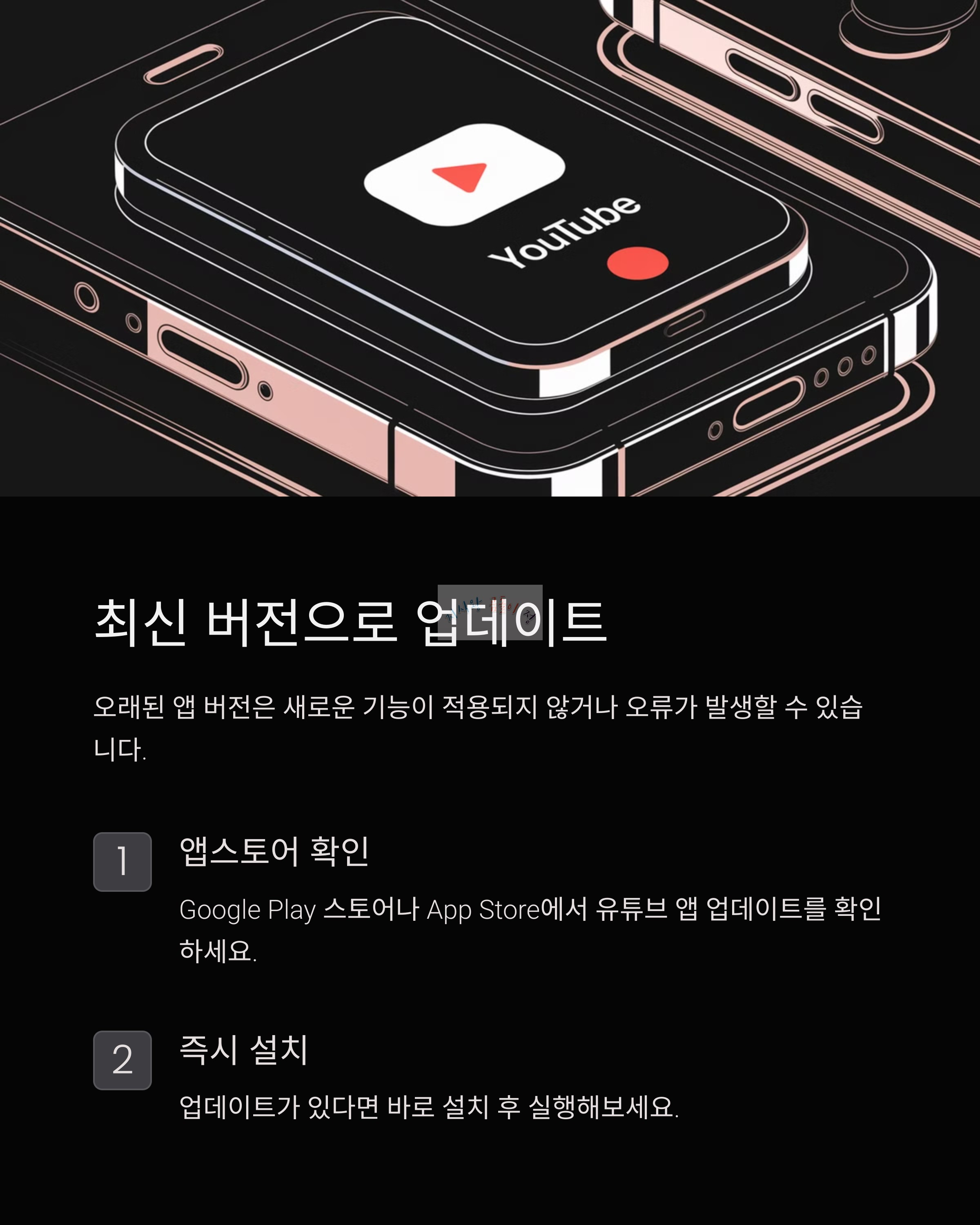 - 유튜브 앱을 검색하여 최신 버전이 있는지 확인