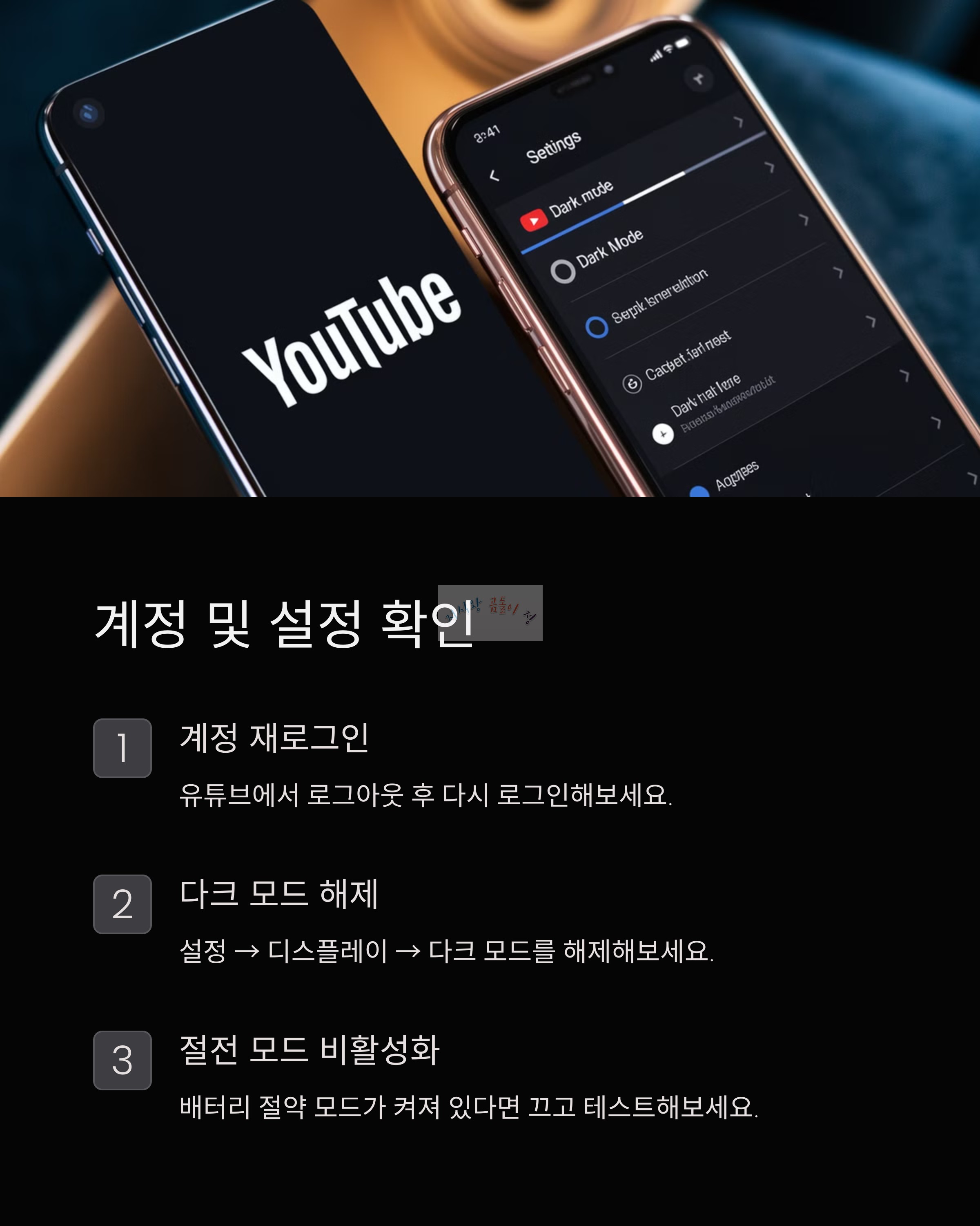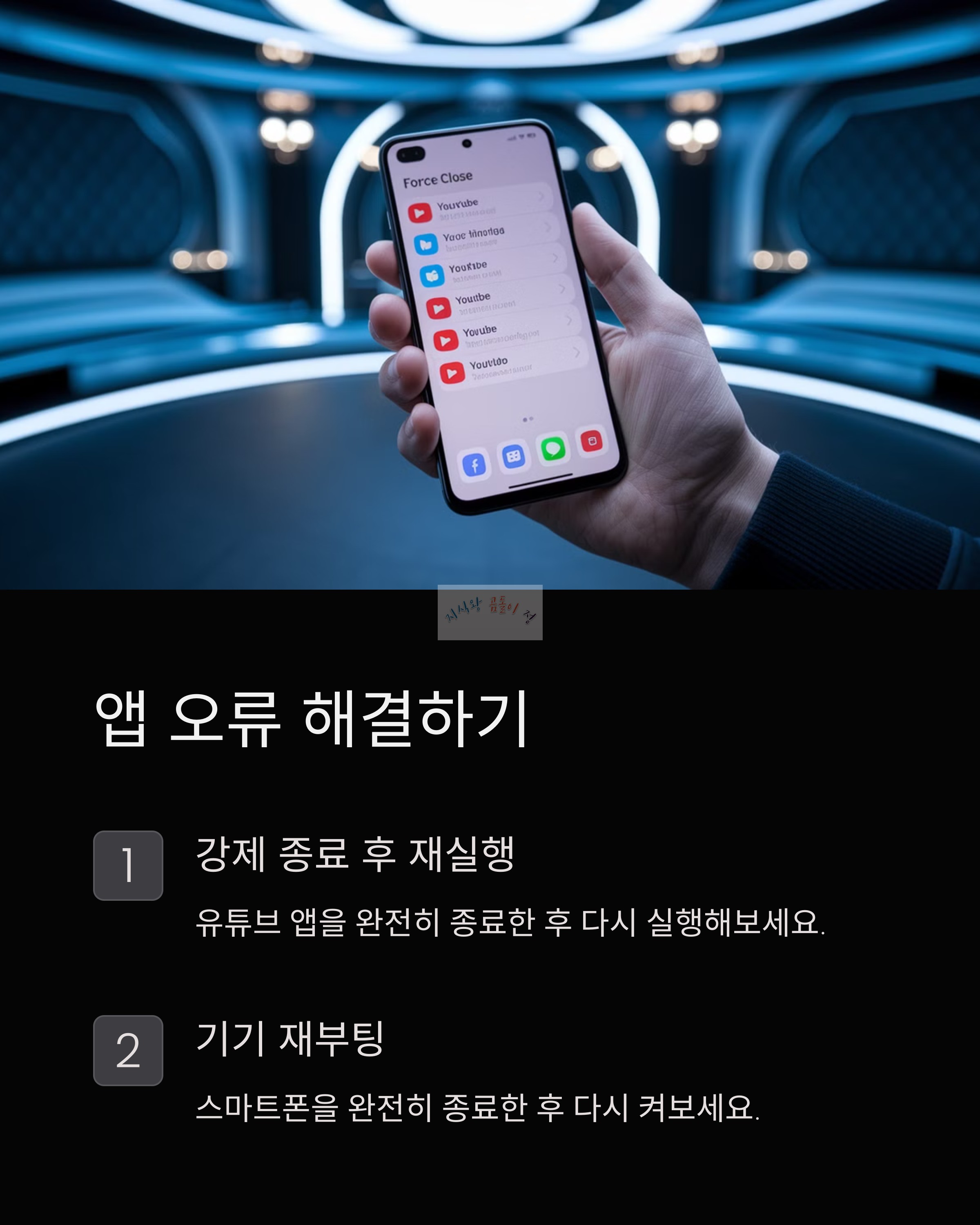 - 유튜브 앱 강제 종료 및 기기 재부팅