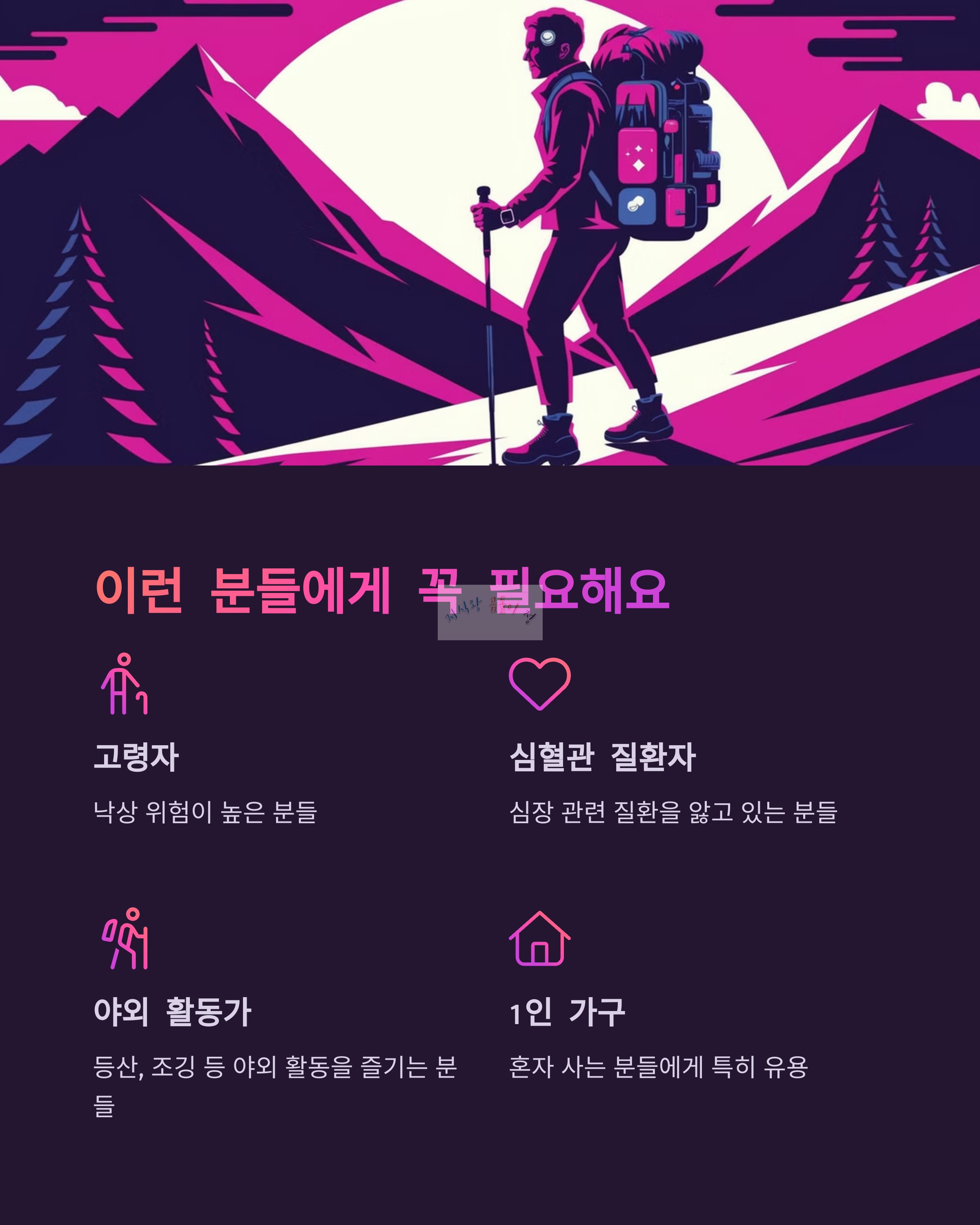 ✅ 자주 야외 활동을 하는 사람들 (등산, 조깅 등)