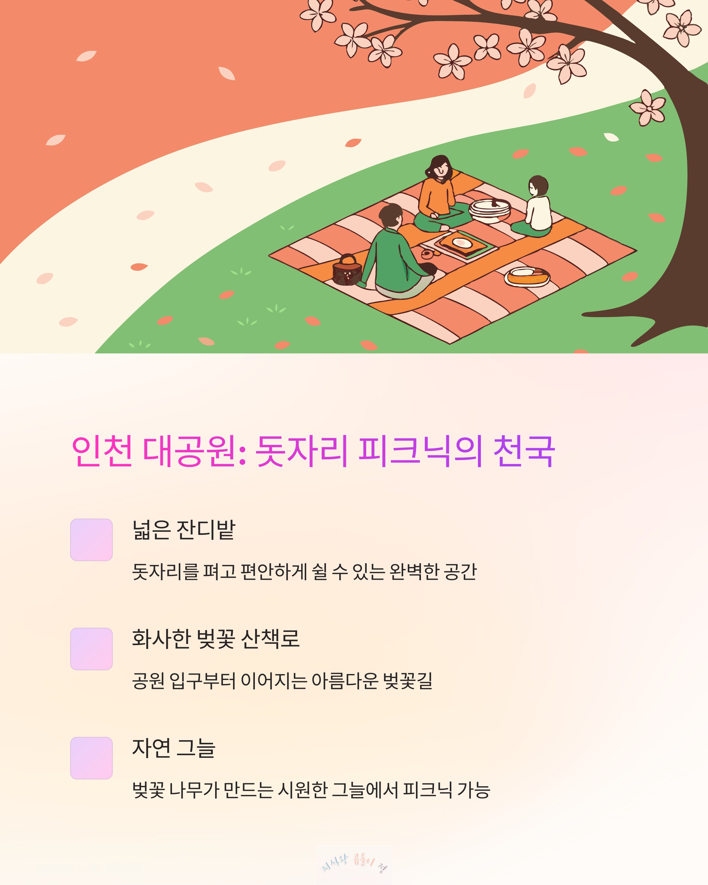 추천 포인트: 벚꽃 피크닉을 제대로 즐기고 싶다면 인천 대공원 강력 추천!