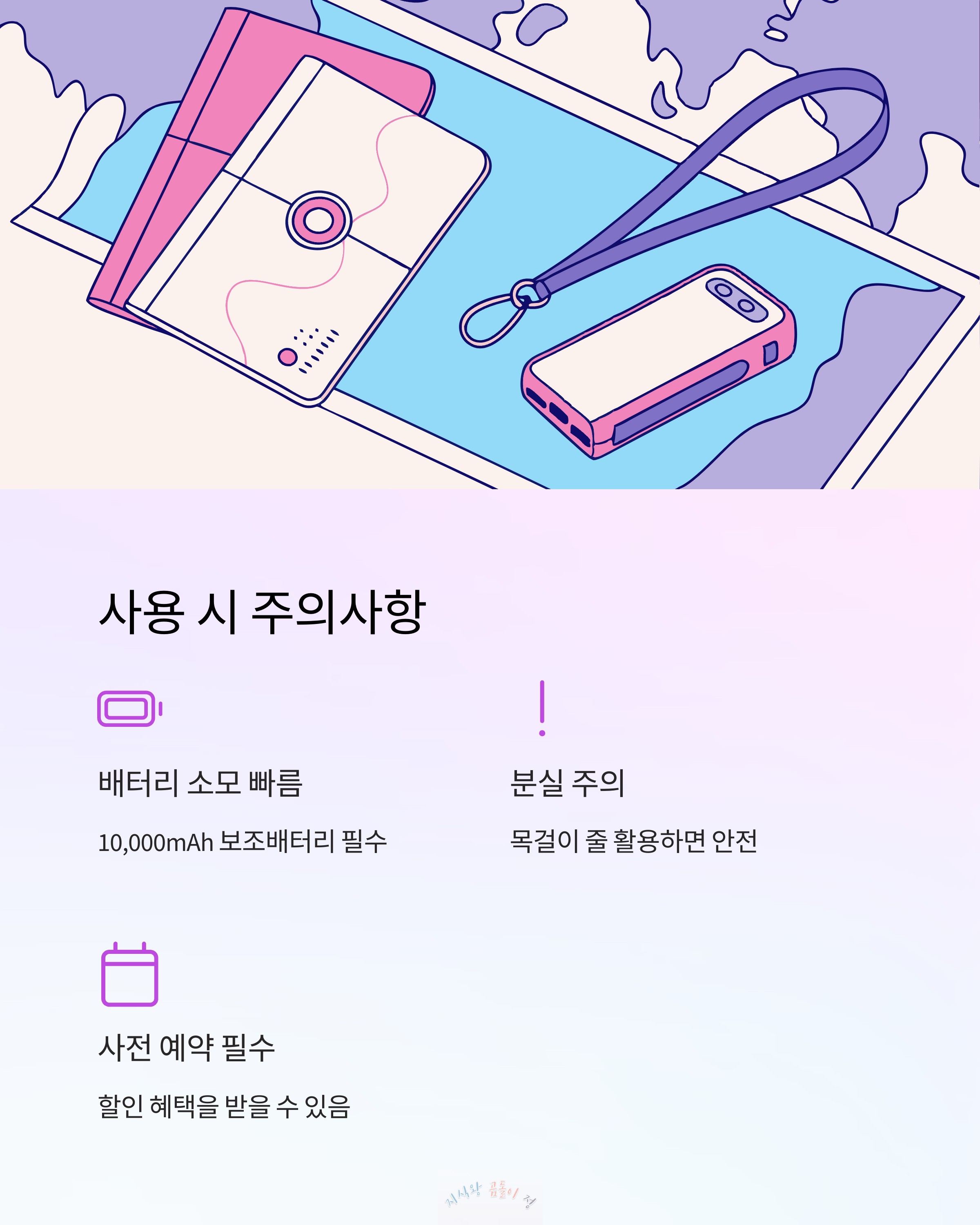 • 공항 수령 & 반납: 장비 수령과 반납이 공항에서 이루어지기 때문에 귀국할 때 잊지 않고 반납하도록 챙기세요.