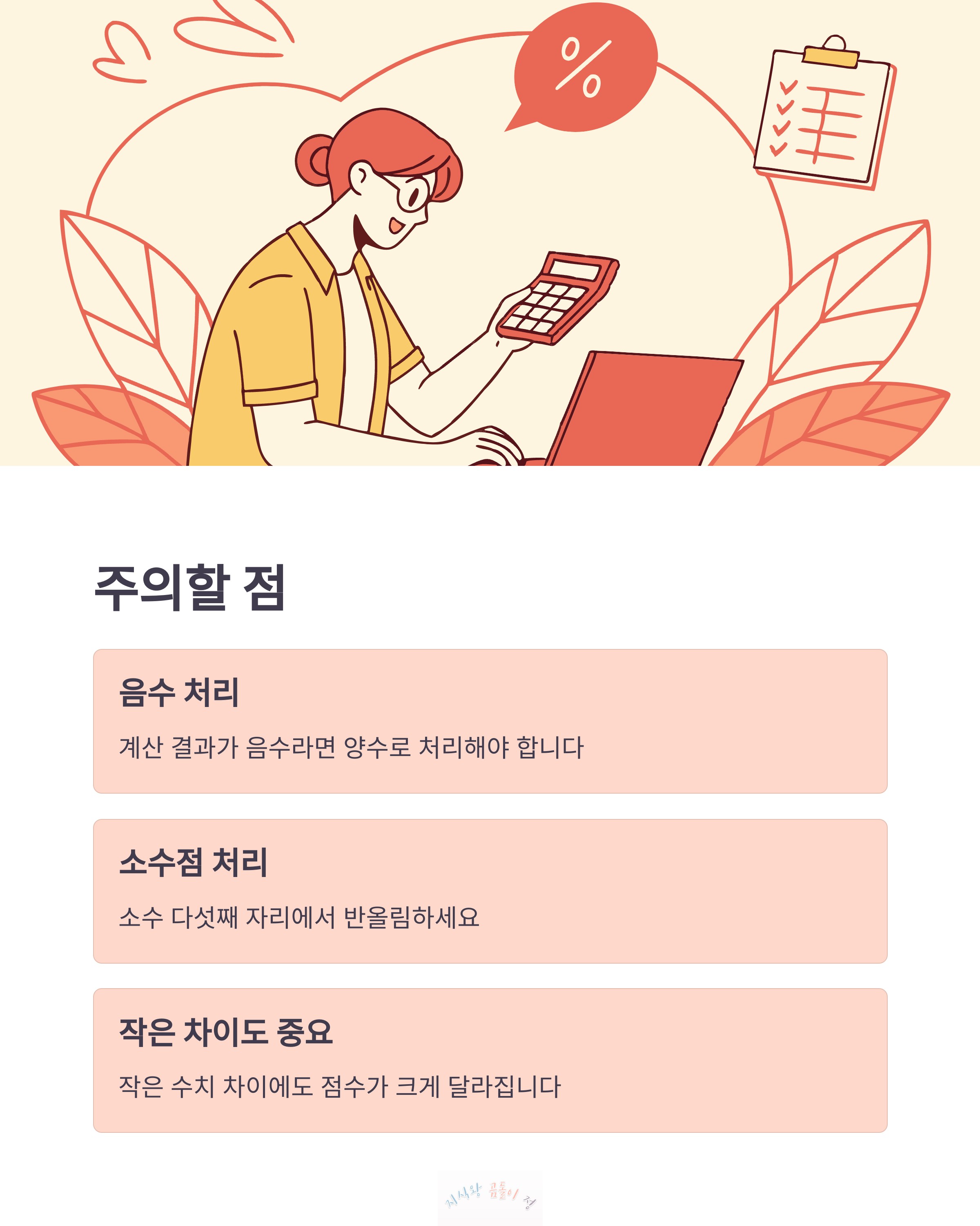 절대값 안의 결과가 음수라면, 양수로 처리해야 한다는 점도 기억해두세요.