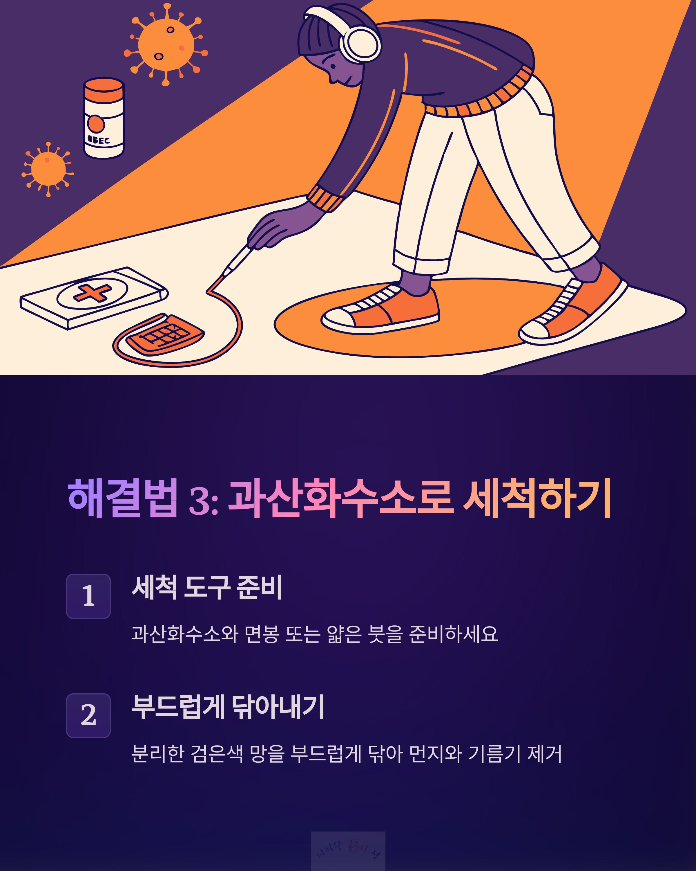 분리한 검은색 망은 과산화수소를 활용해 닦아줍니다.