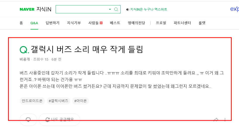 네이버 지식인 갤럭시 버즈 음량 작은 문제