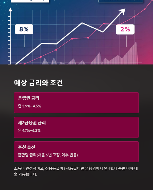 ✅ 금리: 3.9%~4.5% (고정/혼합형 추천)