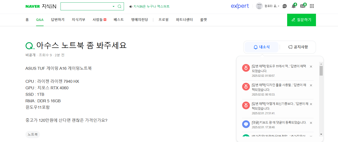 - CPU: AMD 라이젠 9 7940HX (최신 세대 고성능 프로세서)
