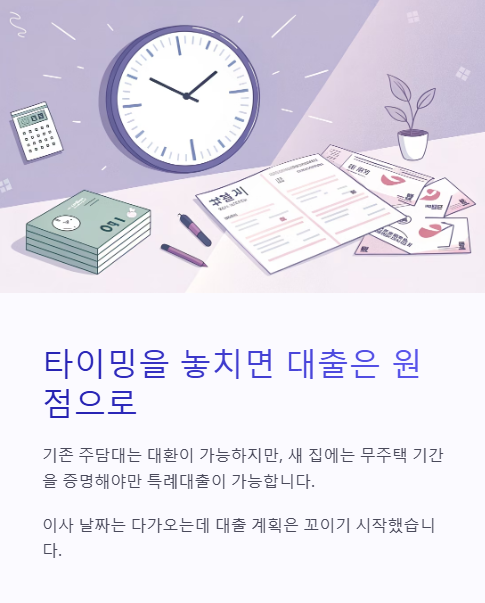 이사, 계약, 대출 순서를 정확히 조율해야 성공할 수 있습니다.
