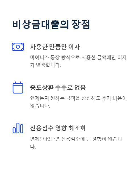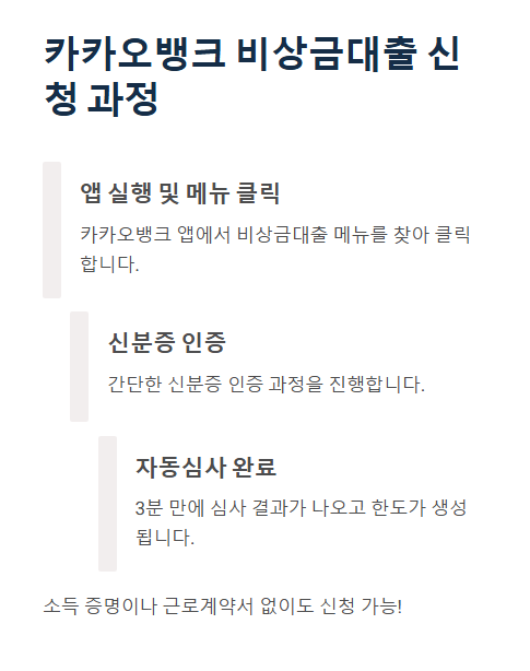 카카오뱅크 비상금대출은 무직 상태에서도 신청 가능하며, 중도상환 수수료 없이 사용한 만큼만 갚을 수 있어 신용점수 영향도 적습니다.