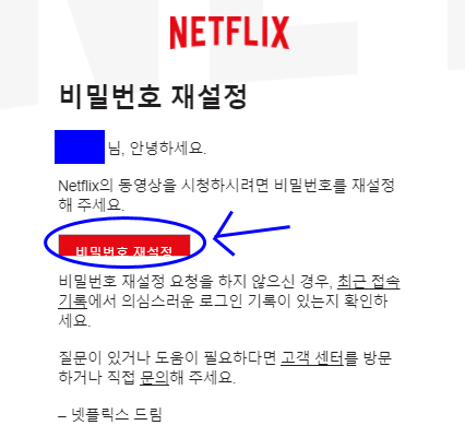 - 비밀번호 재설정 요청 : 넷플릭스 로그인 페이지에서 '비밀번호를 잊으셨나요?'를 클릭하세요.
