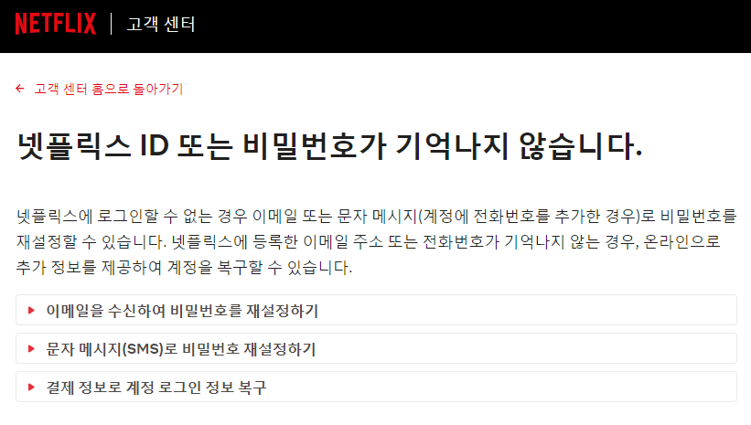 넷플릭스 아이디와 비밀번호를 찾을 수 없을 때 해결 방법