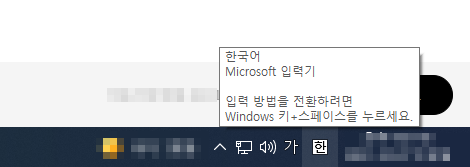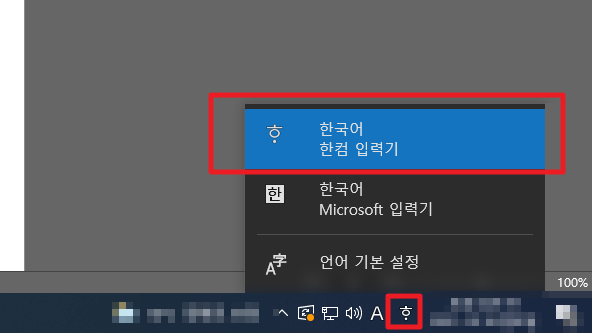 1. 작업 표시줄 오른쪽 하단의 **언어 입력 아이콘(예: A 또는 가)**을 클릭합니다.