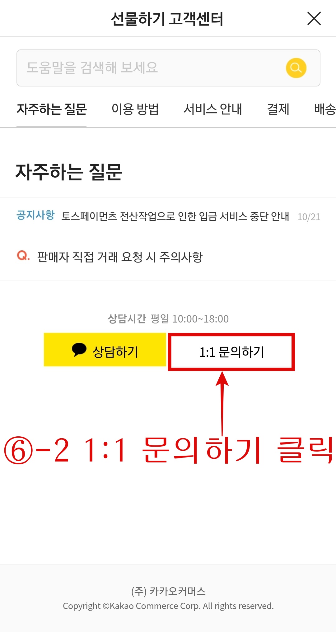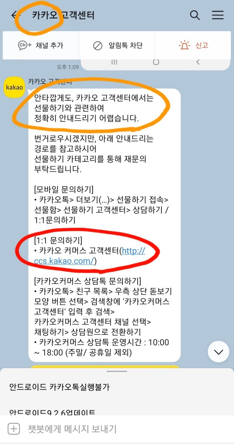 - 모든 해결 방법을 시도한 후에도 오류가 발생하면 카카오 고객센터를 통해 1:1 문의 진행 필수