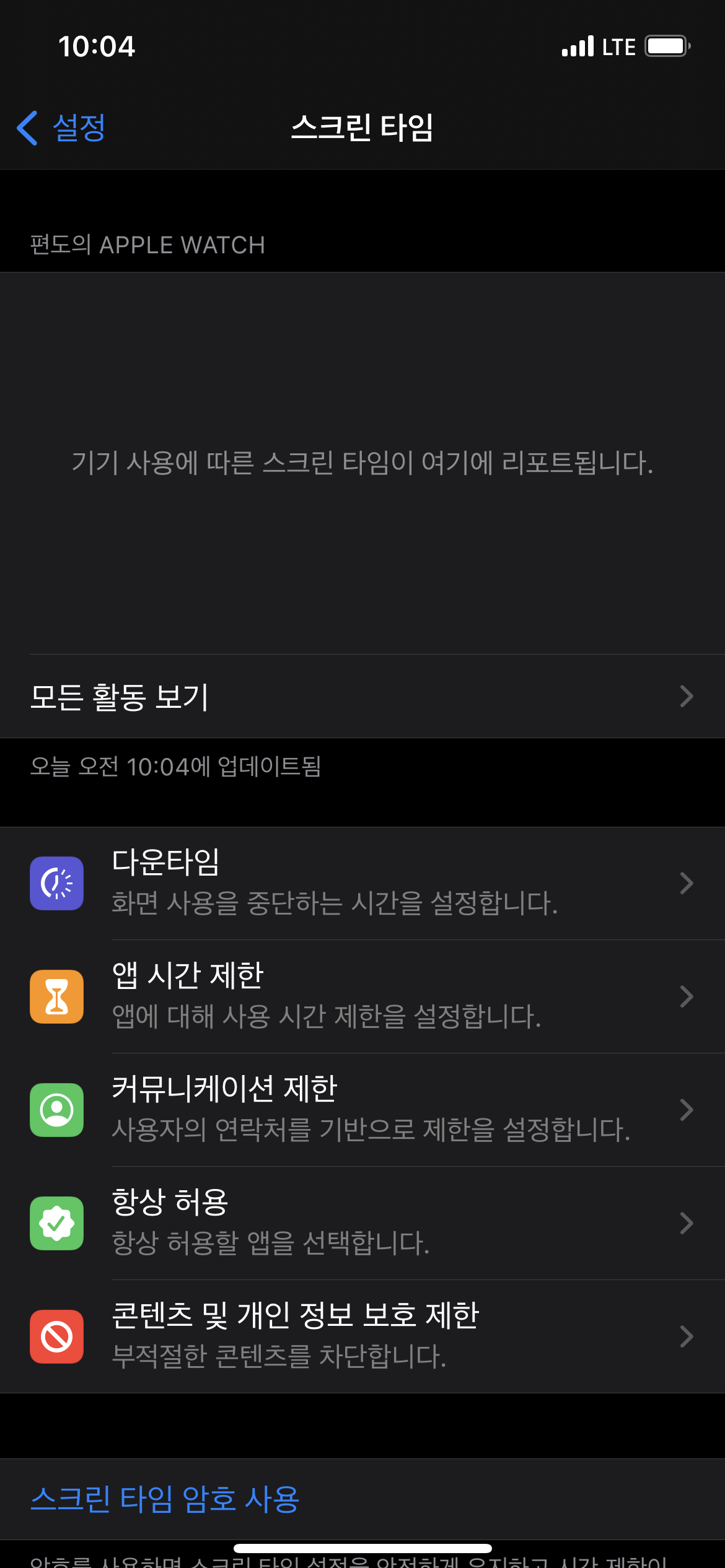 - 스크린 타임 비밀번호를 설정해야 합니다.