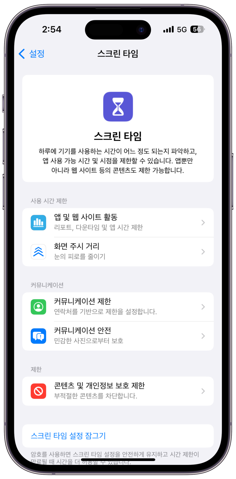- 설정 → 스크린 타임으로 이동