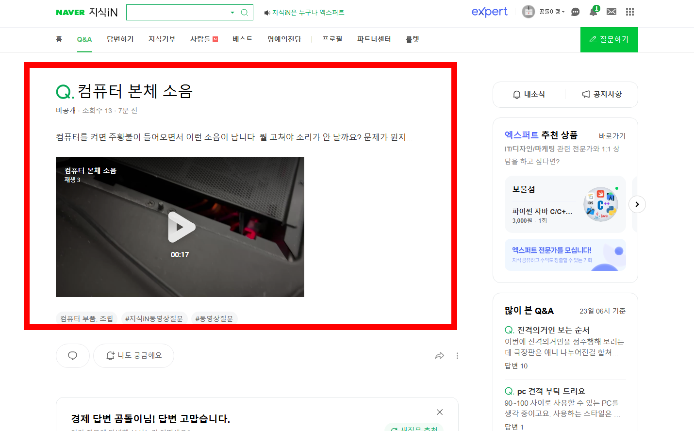 Q1. 컴퓨터 팬에서 소음이 심한데 괜찮을까요?