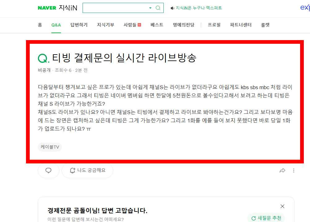 그런데 채널S의 경우, 실시간 라이브 시청이 가능한지 헷갈리시는 분들이 많아요.