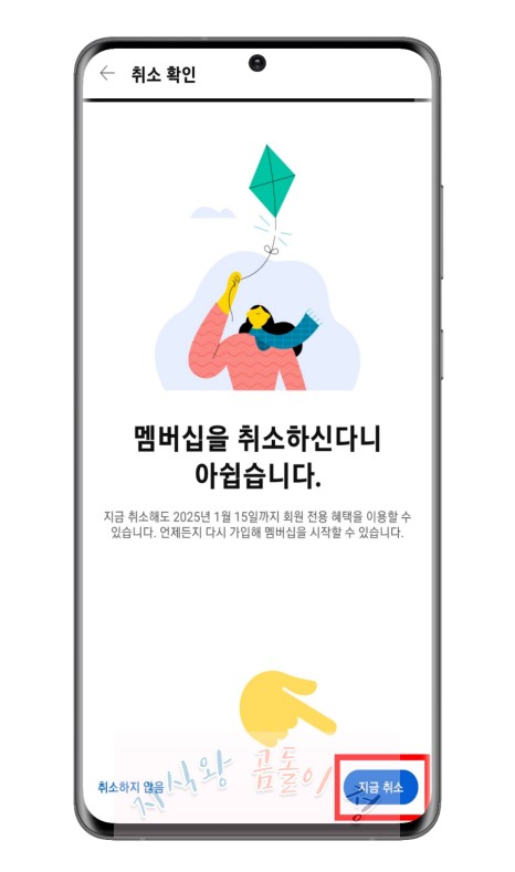 - ‘멤버십 해지’ 옵션을 선택한 후, 안내에 따라 진행하면 해지가 완료됩니다.