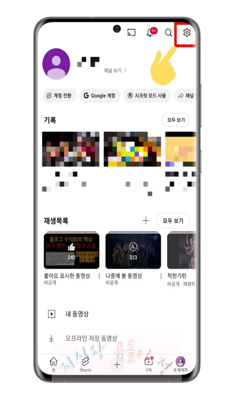 - 유튜브 앱을 열고 **‘프로필 아이콘’**을 클릭합니다.