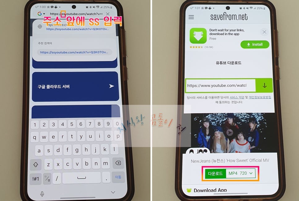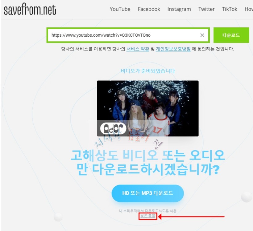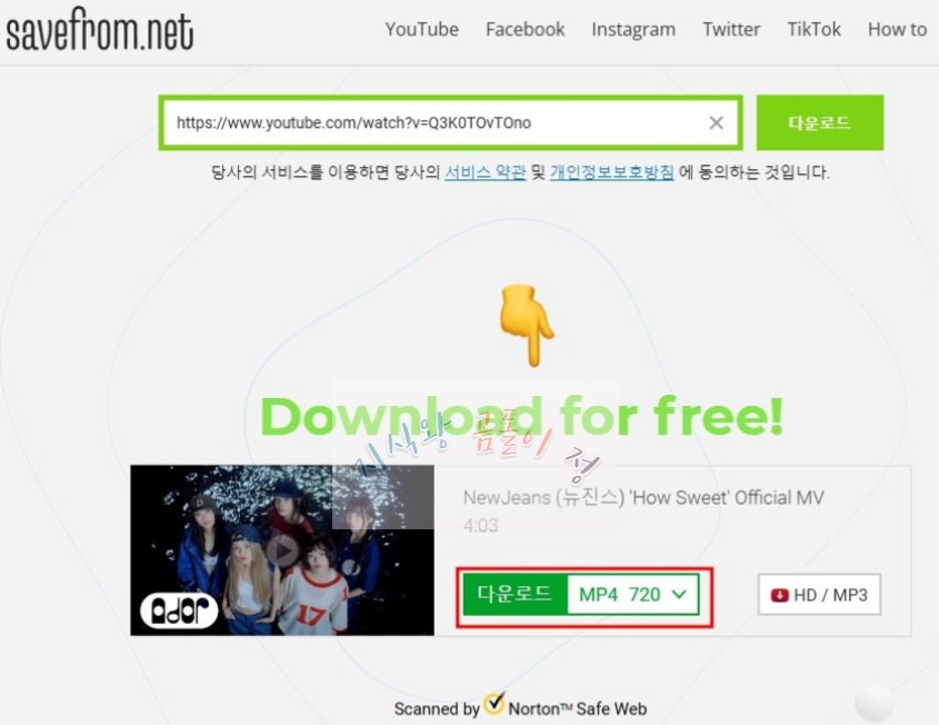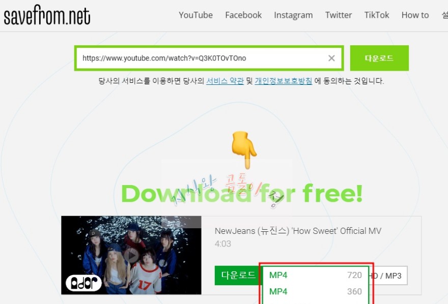 3️⃣ savefrom.net에서 다운로드 진행
