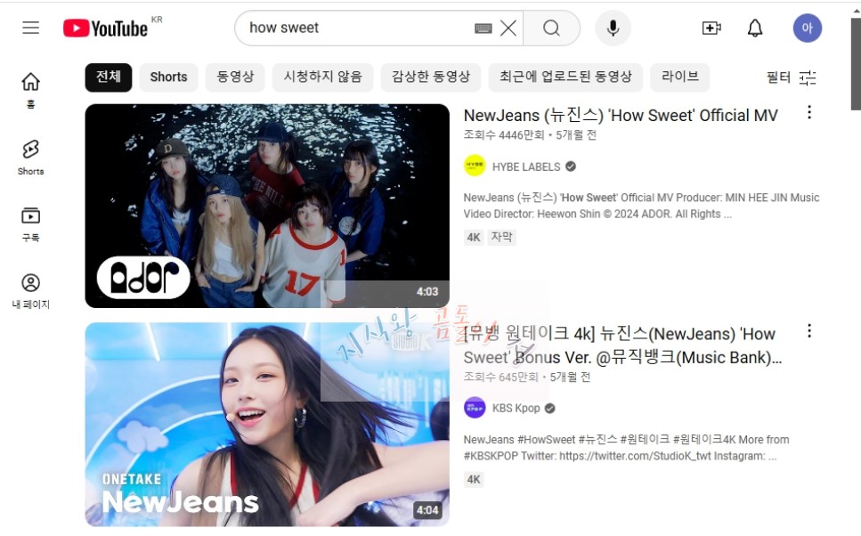 먼저 다운로드하고 싶은 영상을 유튜브에서 검색하여 엽니다.
