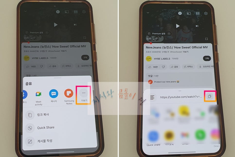 1️⃣ 유튜브 앱에서 영상 링크 복사